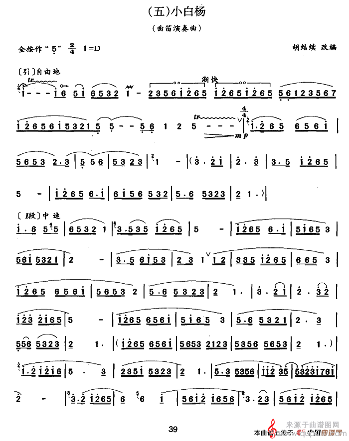 曲谱图网为您提供小白杨(小白杨歌词简谱曲笛)找谱子,就上曲谱图网。