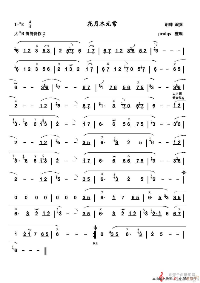 曲谱图网为您提供花月本无常简谱(花月本无常笛子独奏简谱)找谱子,就上曲谱图网。