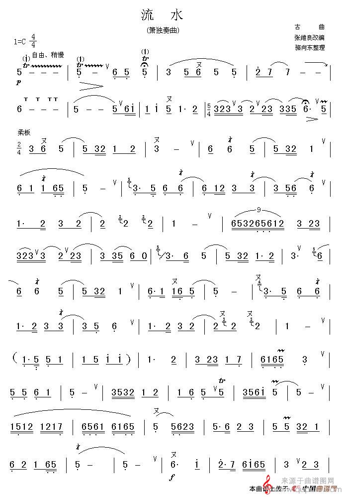 曲谱图网为您提供流水简谱(流水洞箫独奏简谱)找谱子,就上曲谱图网。