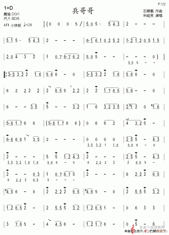曲谱图网为您提供兵哥哥简谱(兵哥哥洞箫曲谱)找谱子,就上曲谱图网。