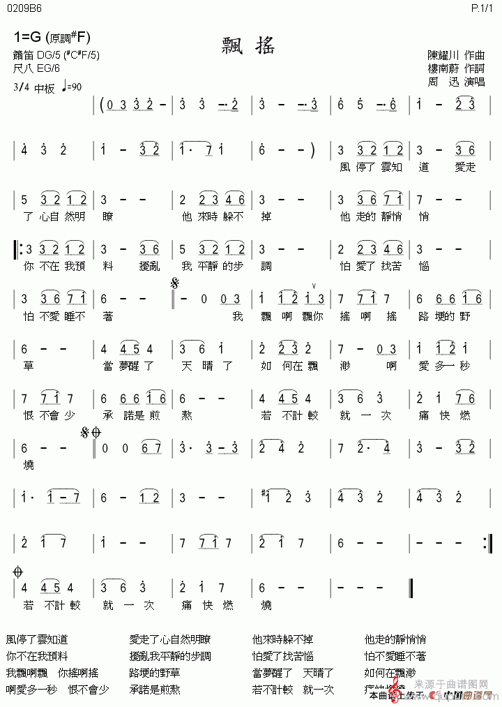 曲谱图网为您提供飄搖简谱(飘摇笛子简谱)找谱子,就上曲谱图网。
