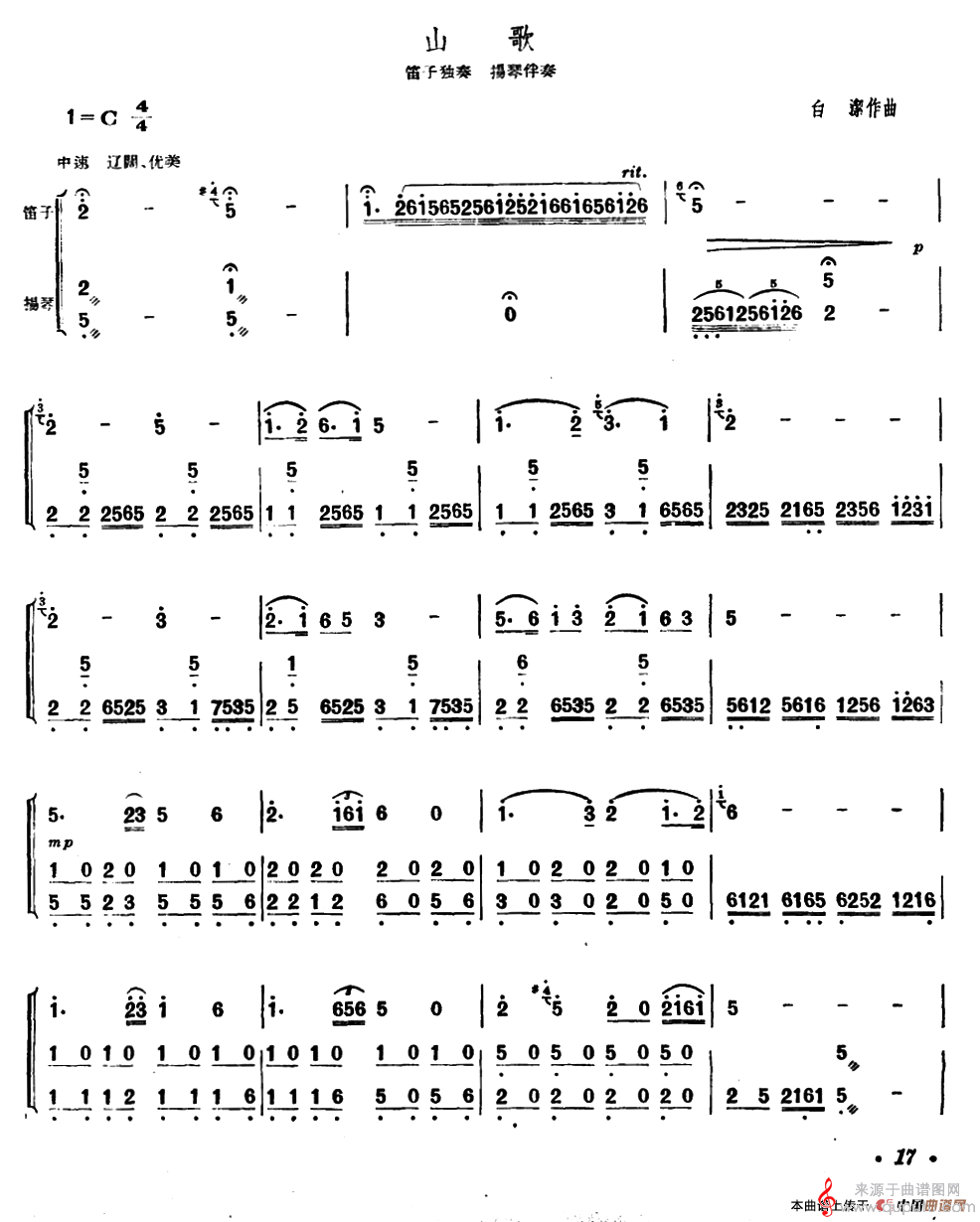 曲谱图网为您提供山歌简谱(山歌笛子独奏扬琴伴奏简谱)找谱子,就上曲谱图网。