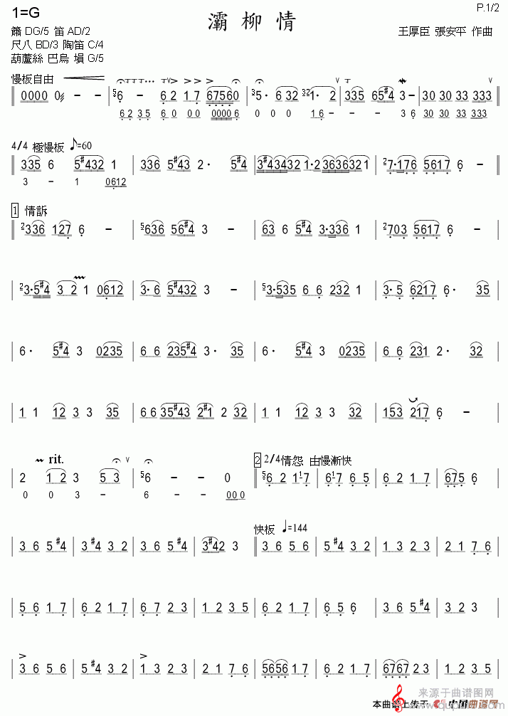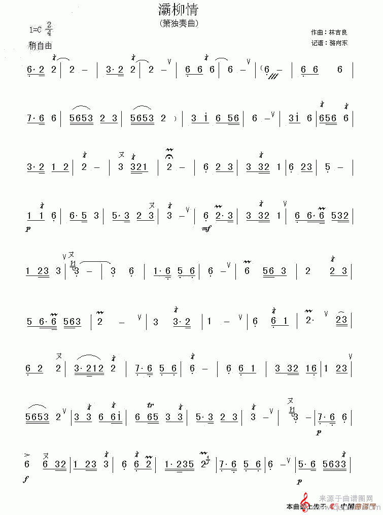 曲谱图网为您提供灞柳情简谱(灞柳情箫独奏曲谱)找谱子,就上曲谱图网。