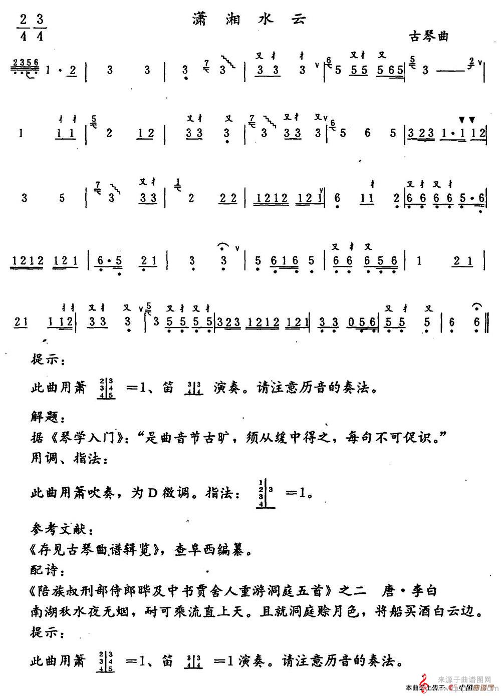 曲谱图网为您提供潇湘水云简谱(潇湘水云箫独奏曲谱)找谱子,就上曲谱图网。