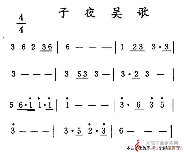 曲谱图网为您提供子夜吴歌简谱(子夜吴歌洞箫乐曲谱)找谱子,就上曲谱图网。