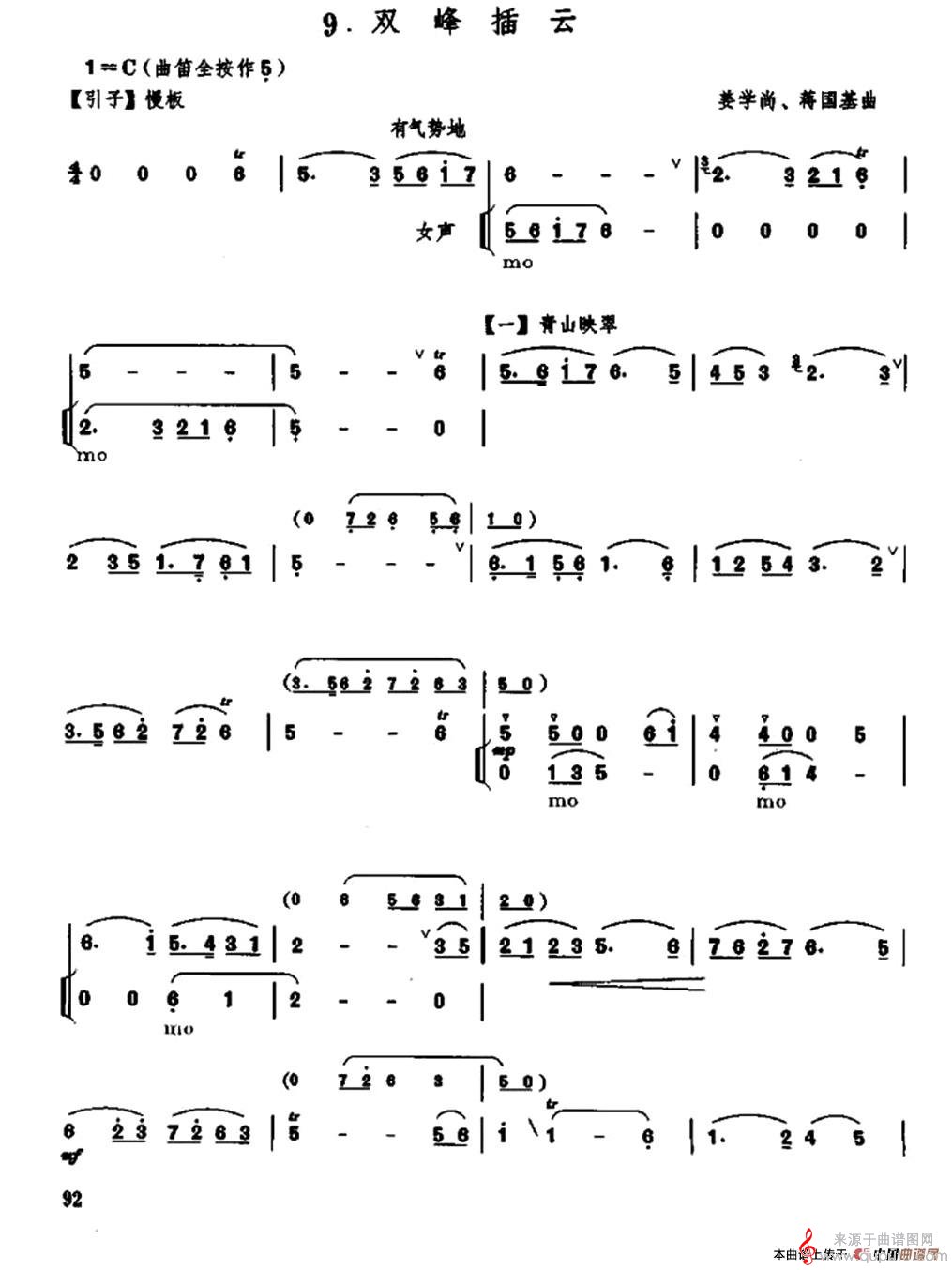 双峰插云简谱(双峰插云笛子独奏乐谱)