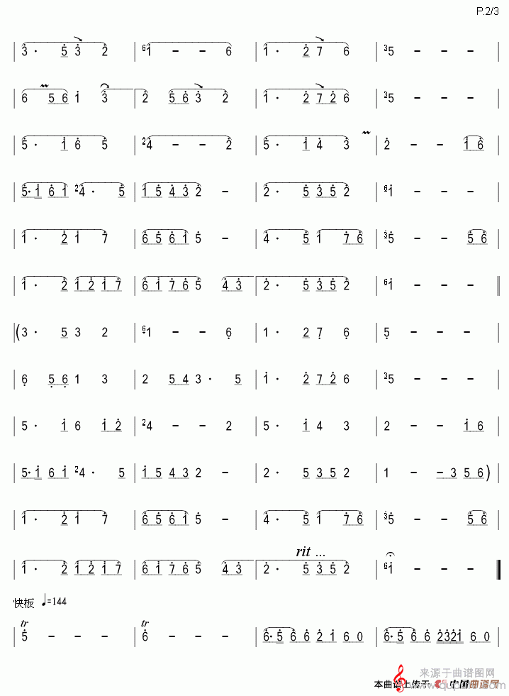 提示:在曲谱图片上单击右键,选择“图片另存为...”即可将曲谱保存到您的电脑中,打印时候可将图片插入到WORD中,调整合适大小打印即可。