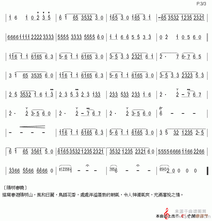 阳明春晓(又名:三月桃花)简谱(阳明春晓笛子独奏简谱)