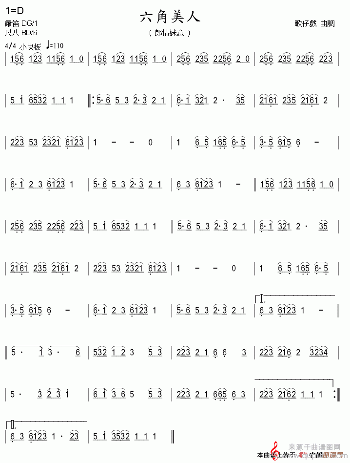 曲谱图网为您提供六角美人简谱(歌仔戏曲调)(六角美人箫曲简谱)找谱子,就上曲谱图网。