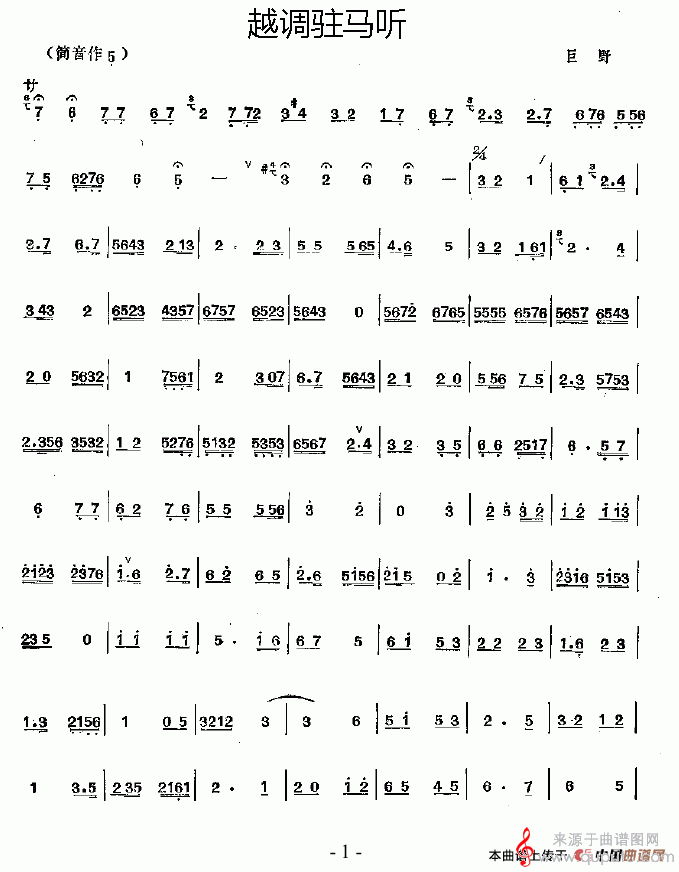 曲谱图网为您提供越调驻马听简谱(越调驻马听竹笛独奏简谱)找谱子,就上曲谱图网。