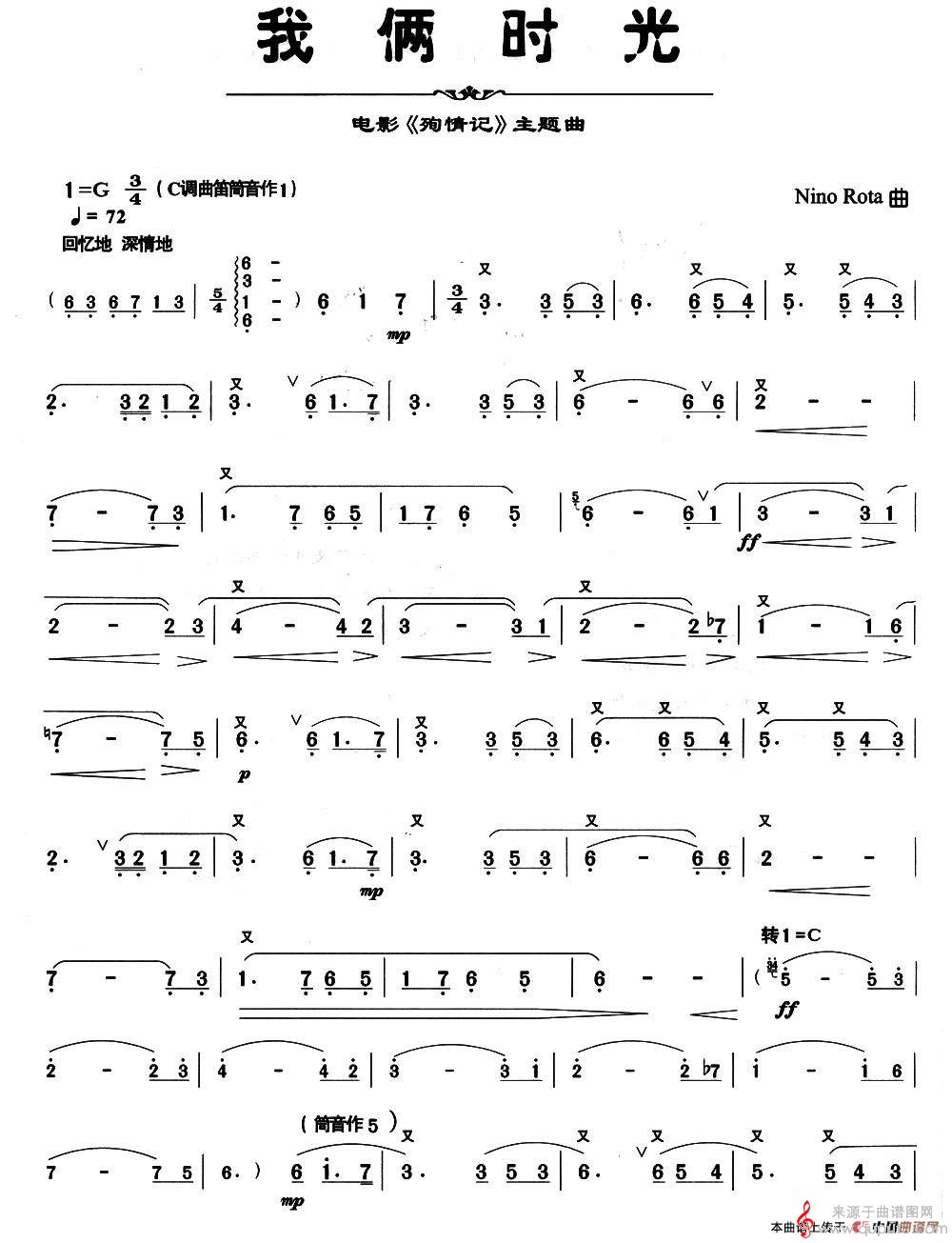 曲谱图网为您提供我俩时光简谱(电影《殉情记》主题曲)(我俩时光笛子演奏乐谱)找谱子,就上曲谱图网。
