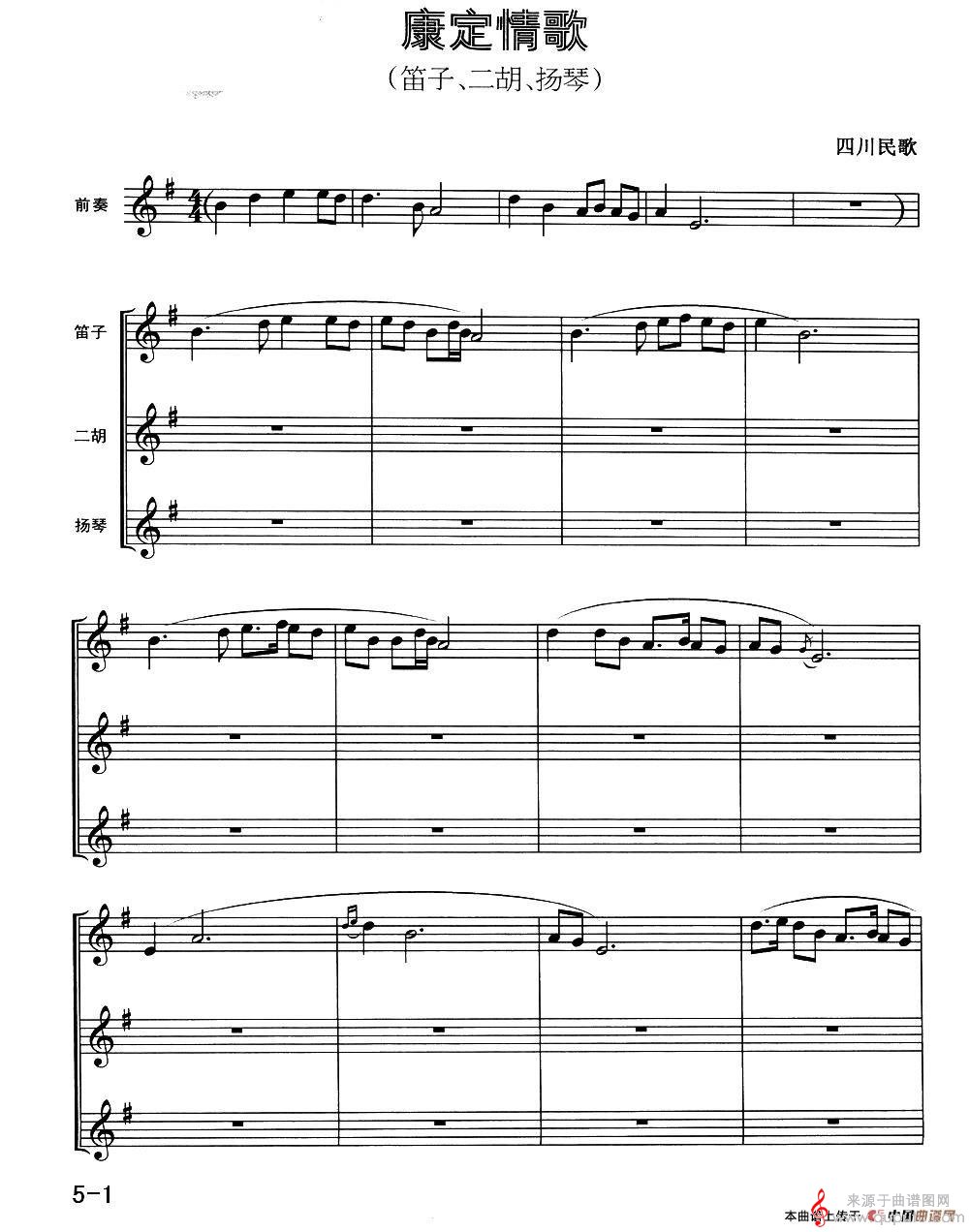 曲谱图网为您提供康定情歌简谱(康定情歌笛子独奏简谱)找谱子,就上曲谱图网。