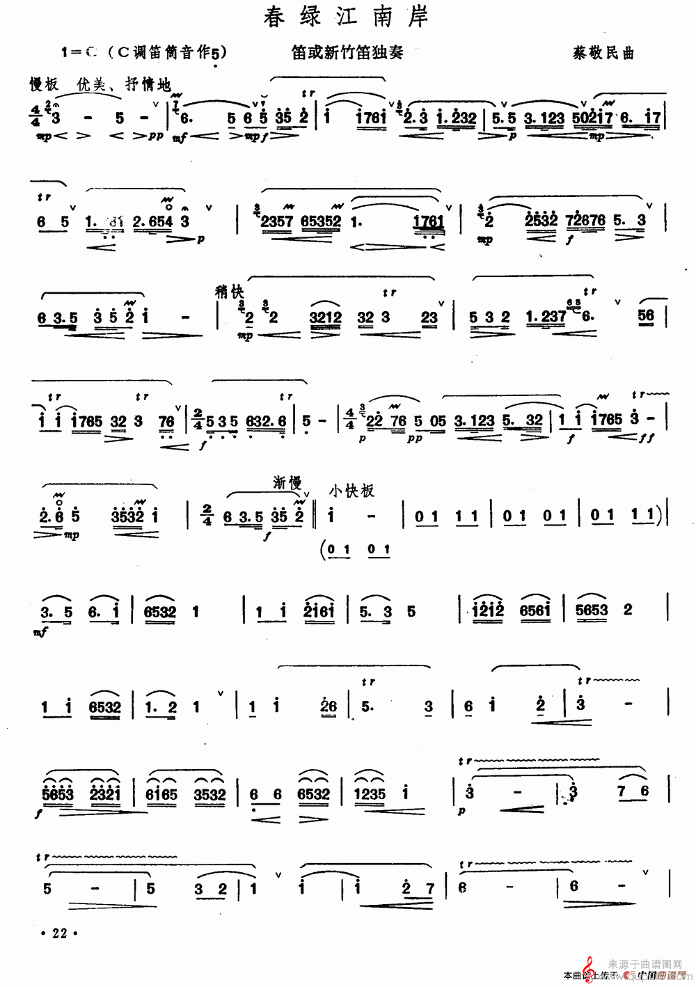 曲谱图网为您提供春绿江南岸简谱(春绿江南岸笛子独奏曲谱)找谱子,就上曲谱图网。