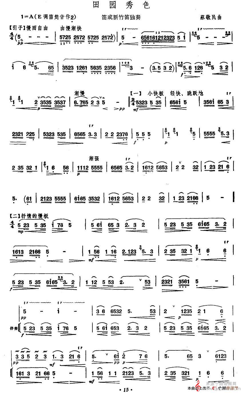 当前位置:曲谱图网器乐曲谱笛箫田园秀色简谱(田园秀色笛子独奏简谱)