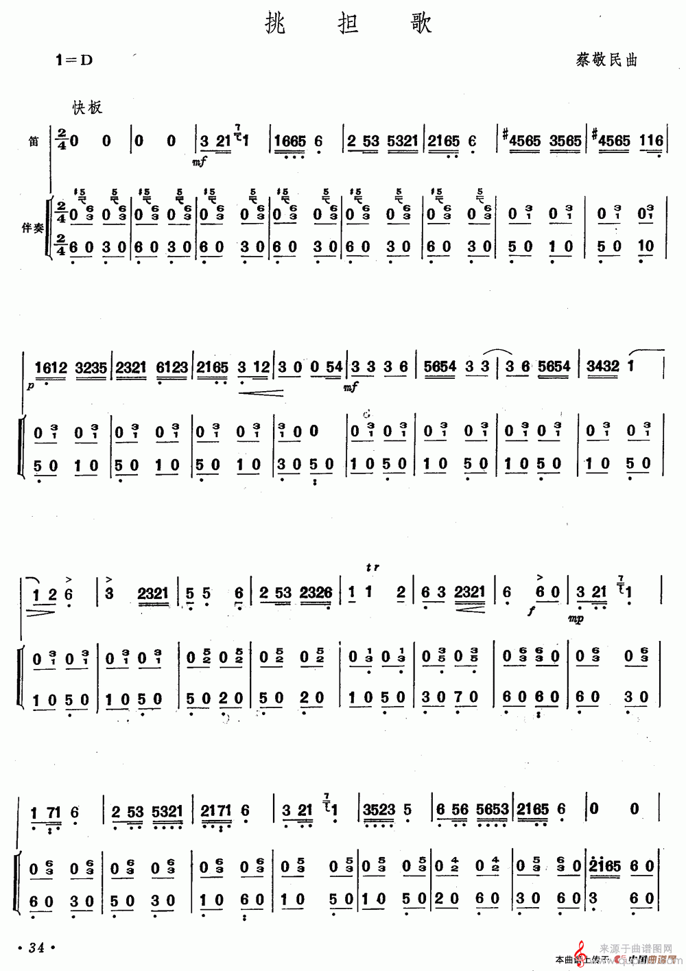 曲谱图网为您提供挑担歌简谱(挑担歌长笛伴奏曲谱)找谱子,就上曲谱图网。