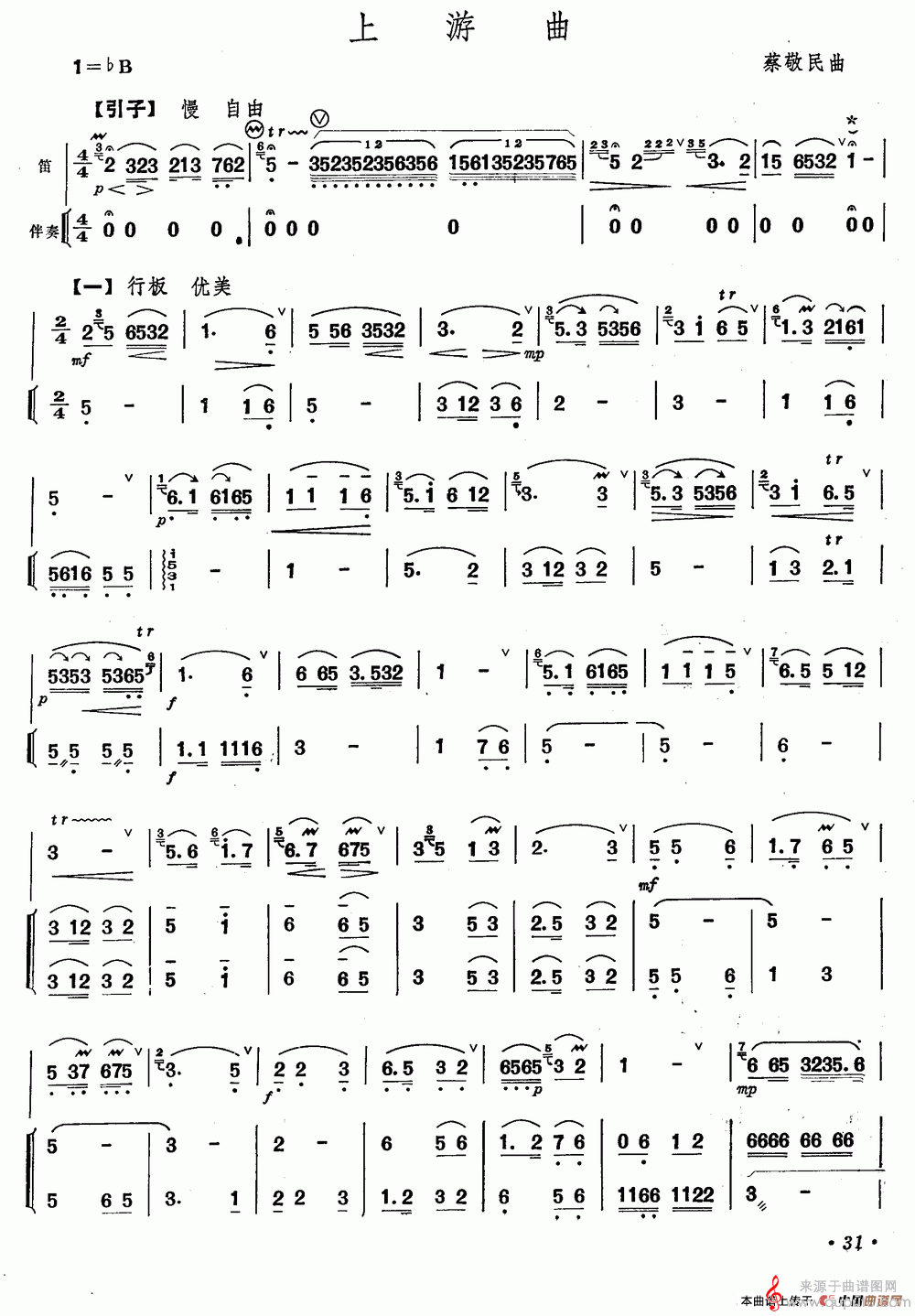 曲谱图网为您提供上游曲简谱(上游曲洞箫伴奏曲谱)找谱子,就上曲谱图网。