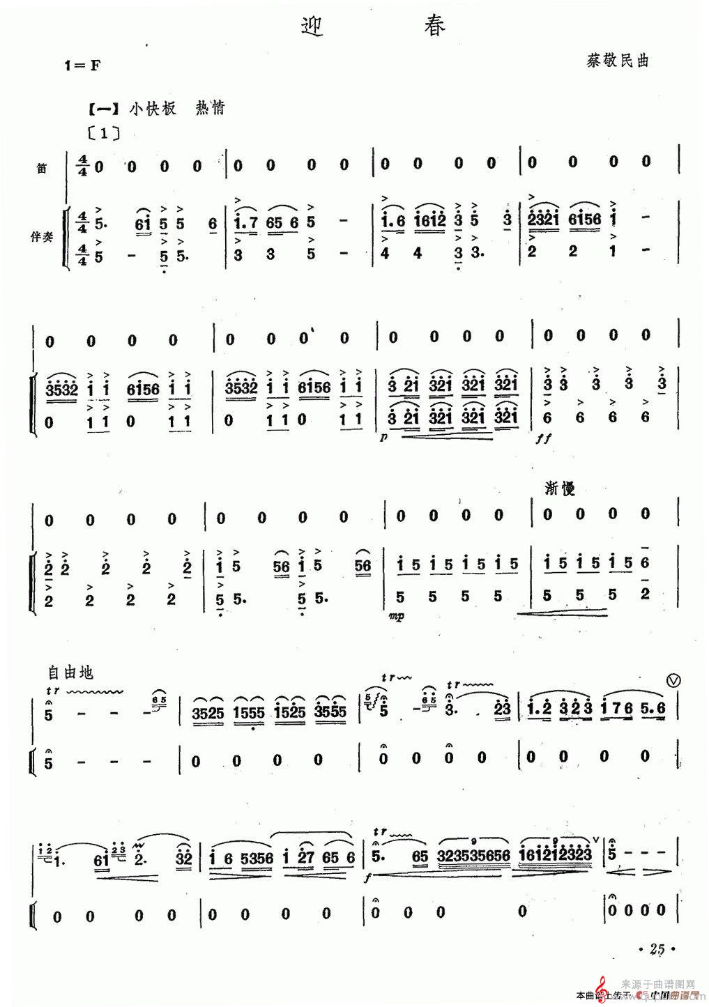 曲谱图网为您提供迎春简谱(迎春洞箫乐曲曲谱)找谱子,就上曲谱图网。