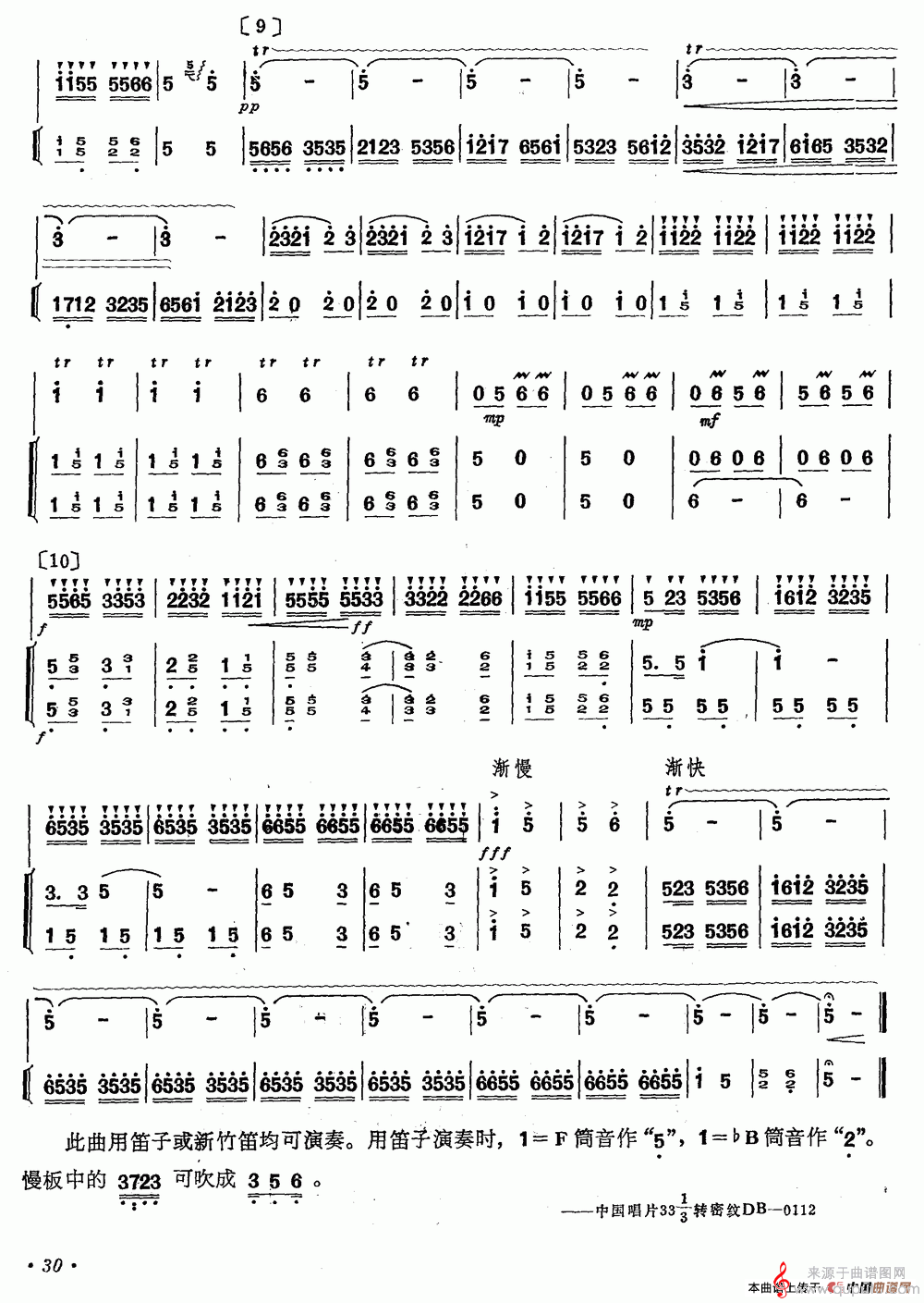 当前位置:曲谱图网器乐曲谱笛箫迎春简谱(迎春洞箫乐曲曲谱)