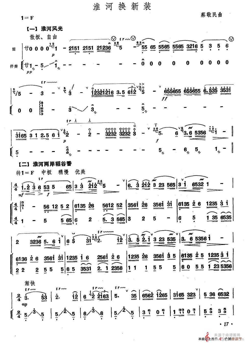 当前位置:曲谱图网器乐曲谱笛箫淮河换新装简谱(淮河换新装笛子伴奏曲谱)