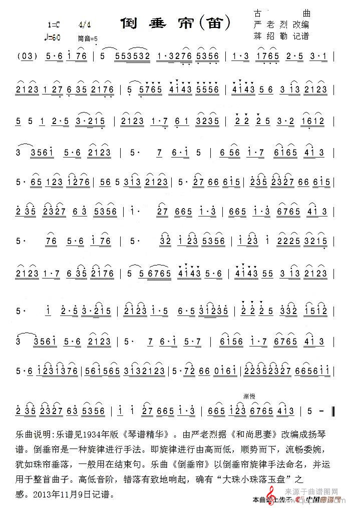 曲谱图网为您提供倒垂帘简谱(倒垂帘洞箫独奏曲谱)找谱子,就上曲谱图网。