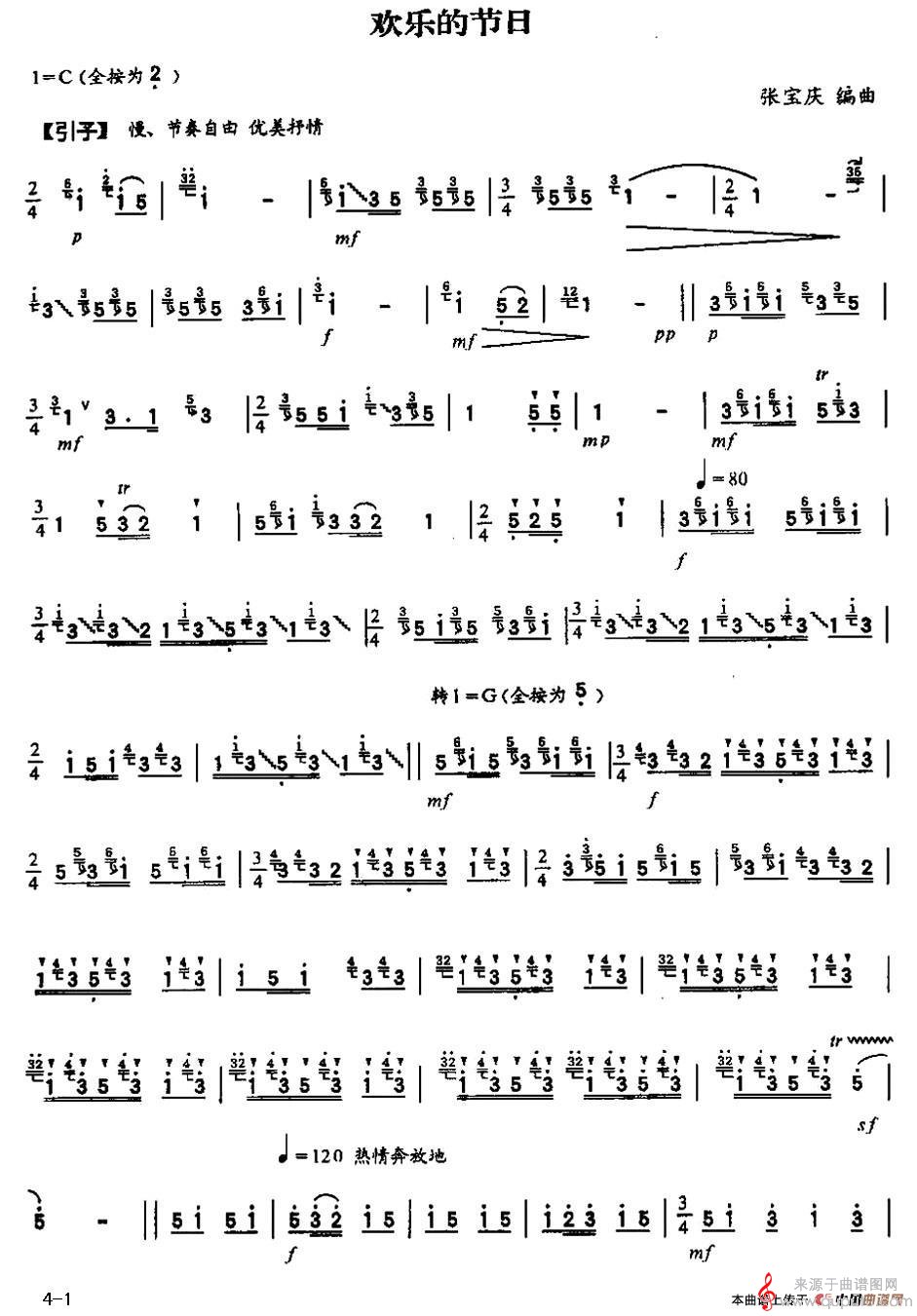 曲谱图网为您提供欢乐的节日简谱(欢乐的节日笛子独奏曲)找谱子,就上曲谱图网。