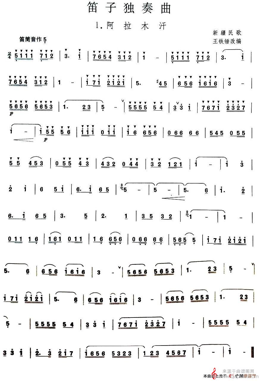 曲谱图网为您提供阿拉木汗简谱(阿拉木汗笛子独奏曲谱)找谱子,就上曲谱图网。