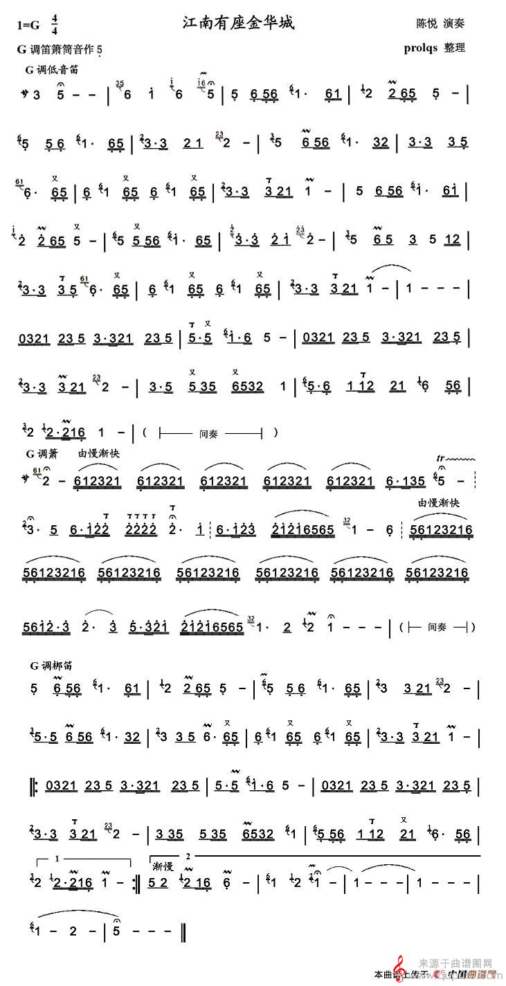 曲谱图网为您提供江南有座金华城歌曲简谱(江南有座金华城洞箫乐曲曲谱)找谱子,就上曲谱图网。
