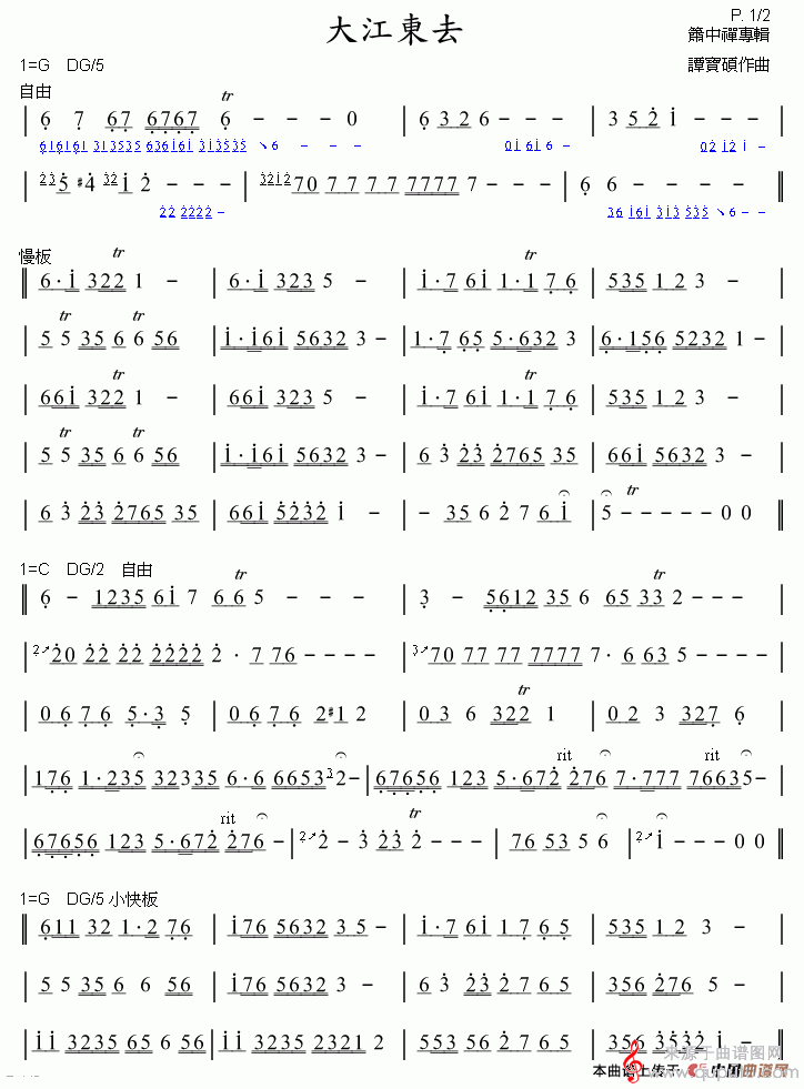 曲谱图网为您提供大江东去原创歌曲简谱(大江东去洞箫独奏曲谱)找谱子,就上曲谱图网。