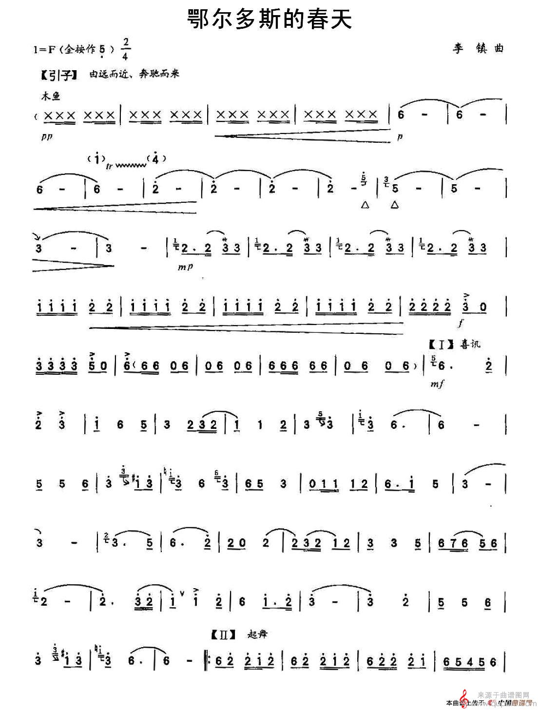 曲谱图网为您提供鄂尔多斯的春天简谱(鄂尔多斯的春天笛子独奏曲谱)找谱子,就上曲谱图网。