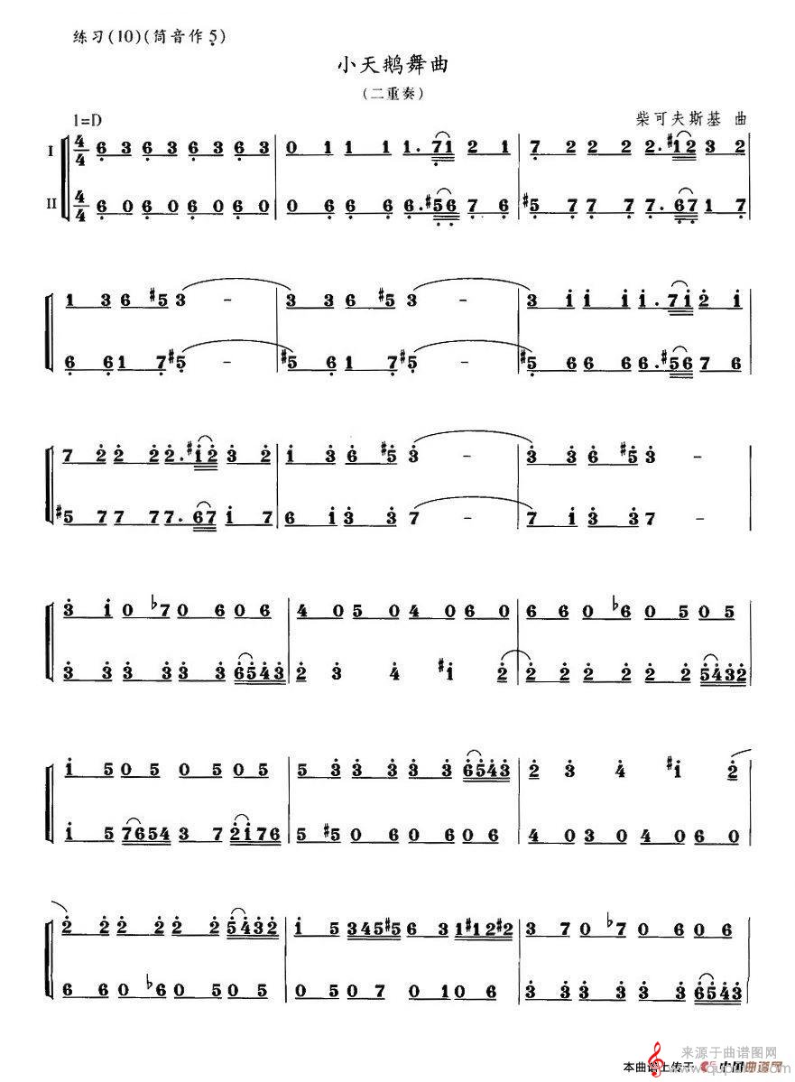 曲谱图网为您提供小天鹅舞曲曲谱(小天鹅舞曲长笛二重奏简谱)找谱子,就上曲谱图网。