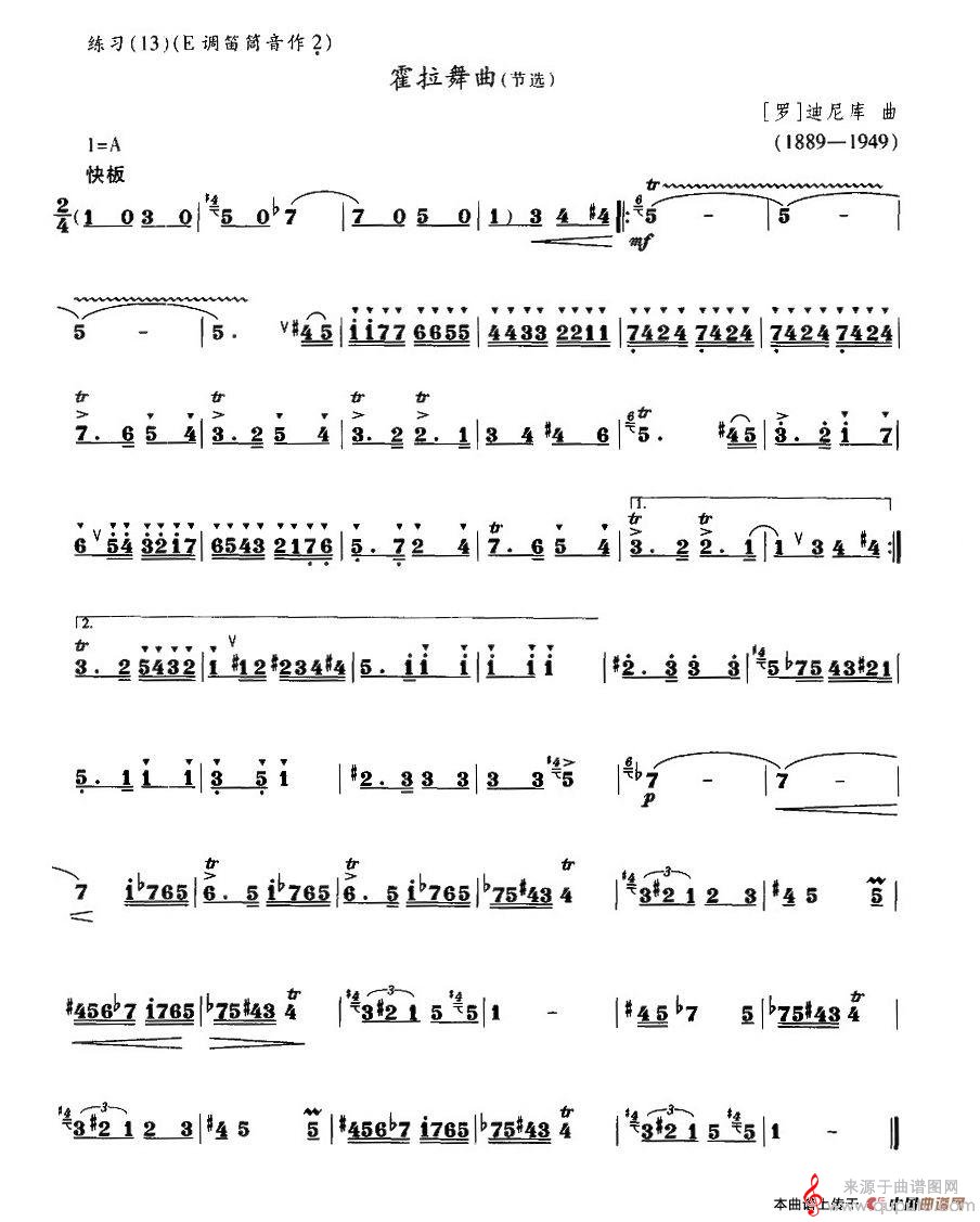 霍拉舞曲(节选)简谱(霍拉舞曲笛子独奏曲谱)