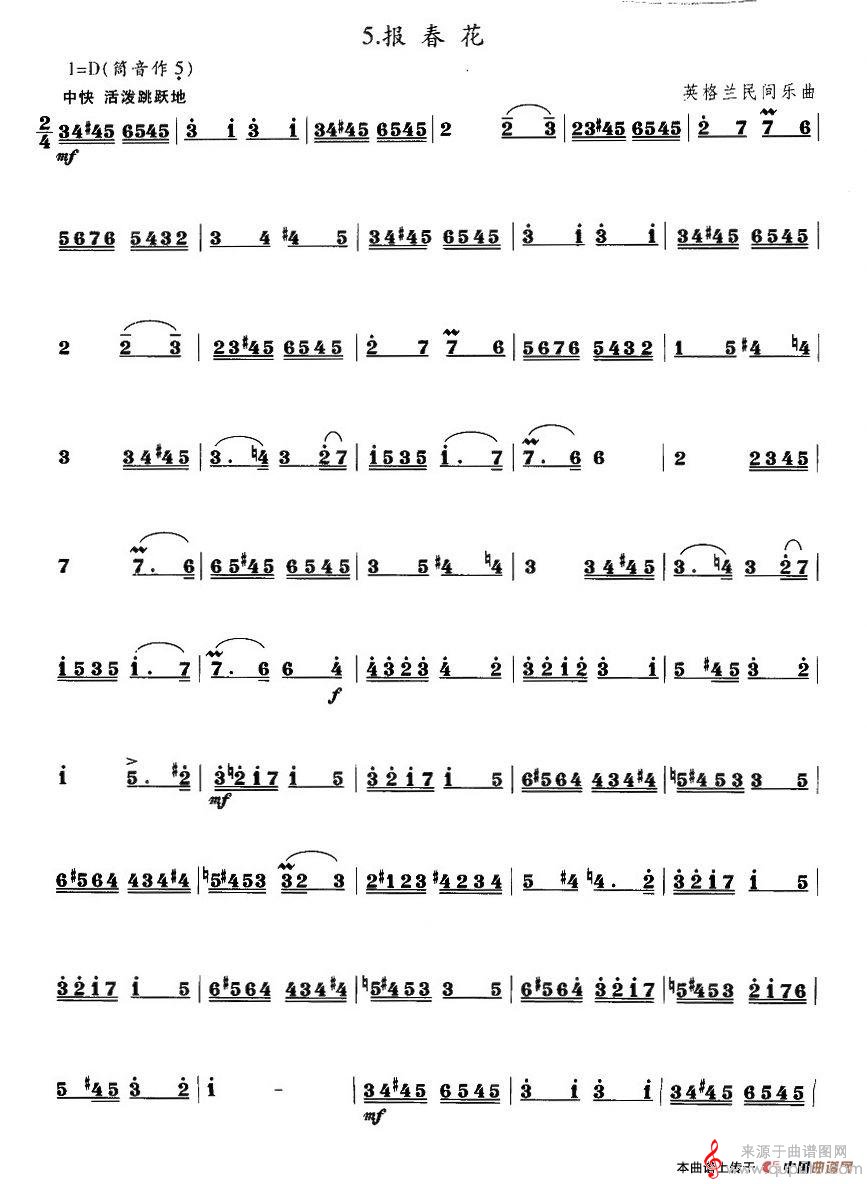 曲谱图网为您提供报春花民乐曲谱(报春花竹笛演奏曲谱)找谱子,就上曲谱图网。