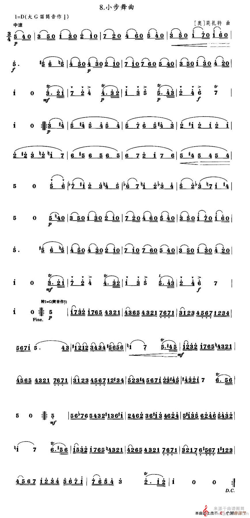 小步舞曲曲谱(小步舞曲竹笛或长笛简谱)