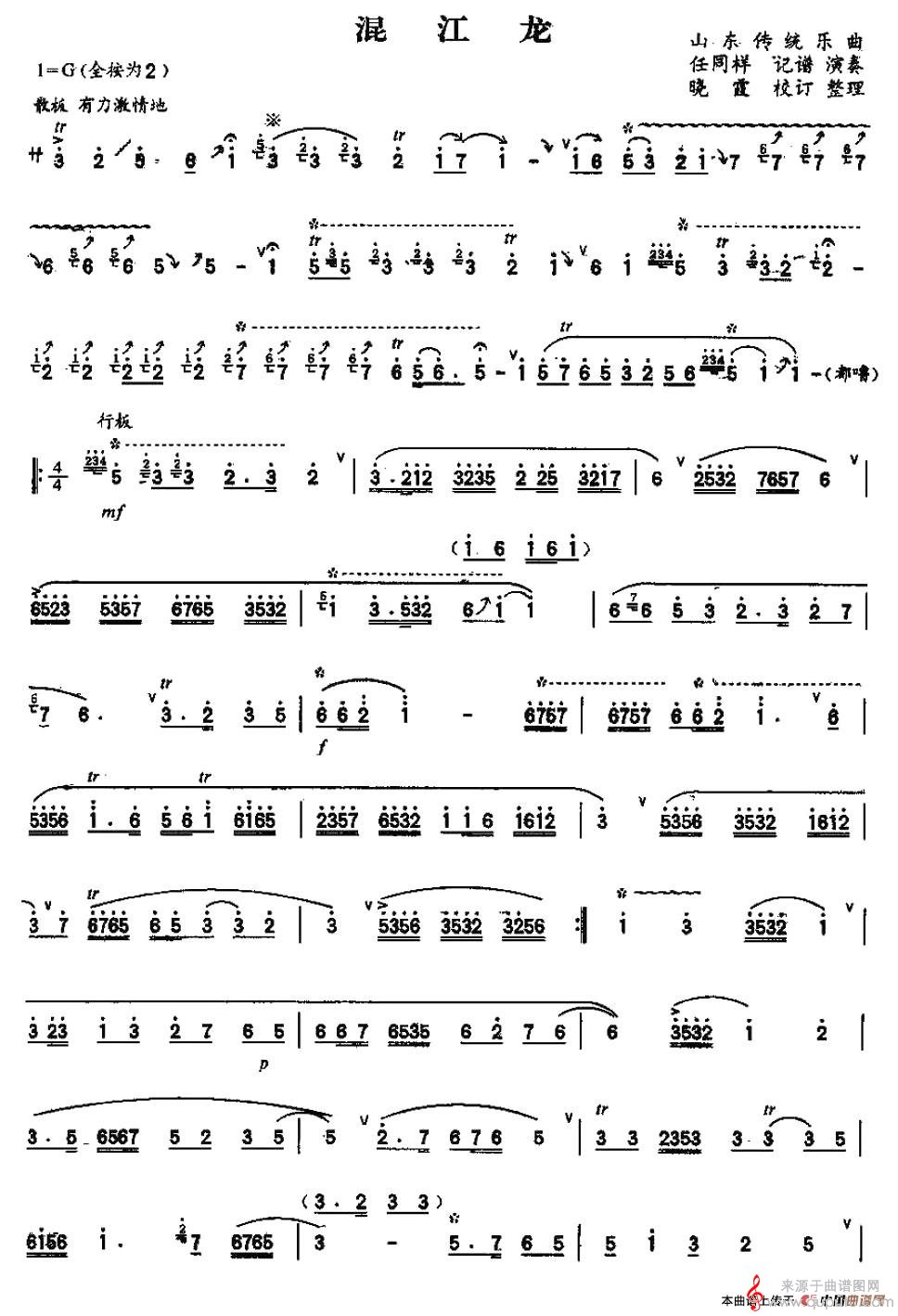 曲谱图网为您提供混江龙民乐简谱(混江龙竹笛演奏曲谱)找谱子,就上曲谱图网。