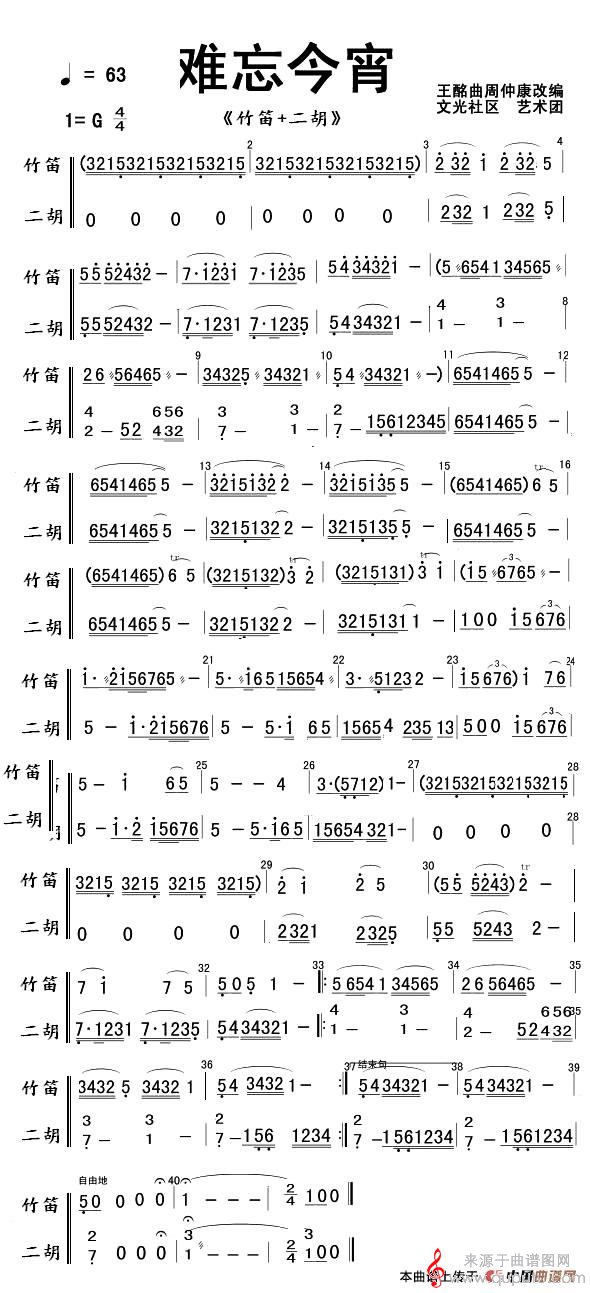 曲谱图网为您提供难忘今宵五线谱(竹笛+二胡)(难忘今宵长笛独奏曲谱)找谱子,就上曲谱图网。