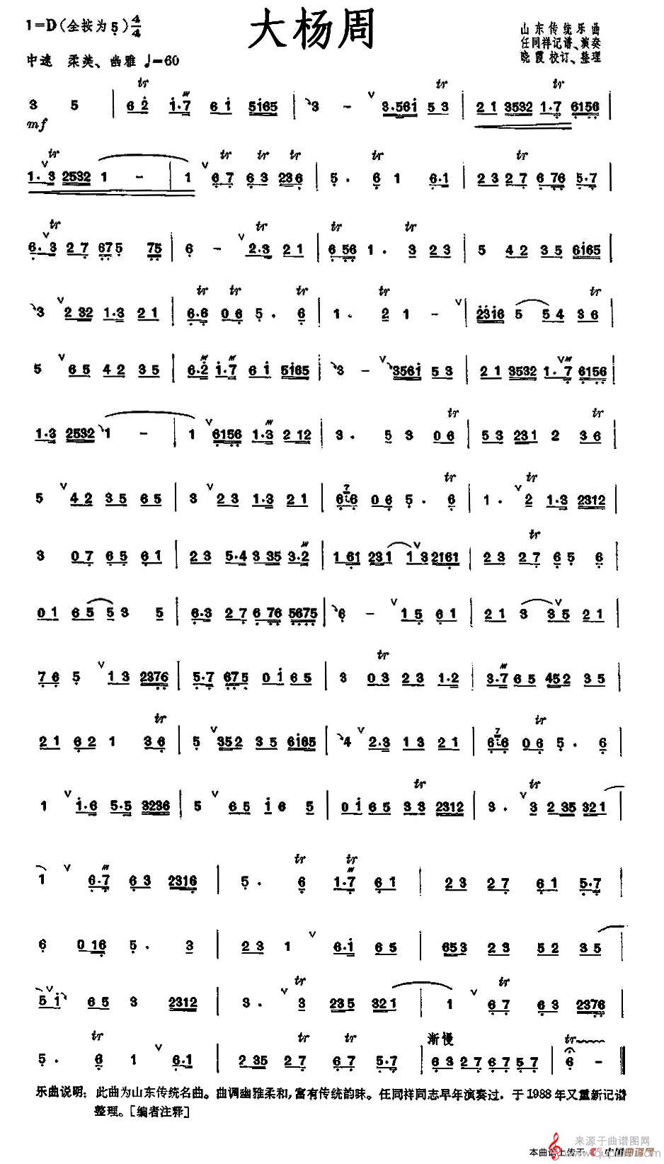 大杨周原创乐曲曲谱(大杨周笛子演奏乐谱)