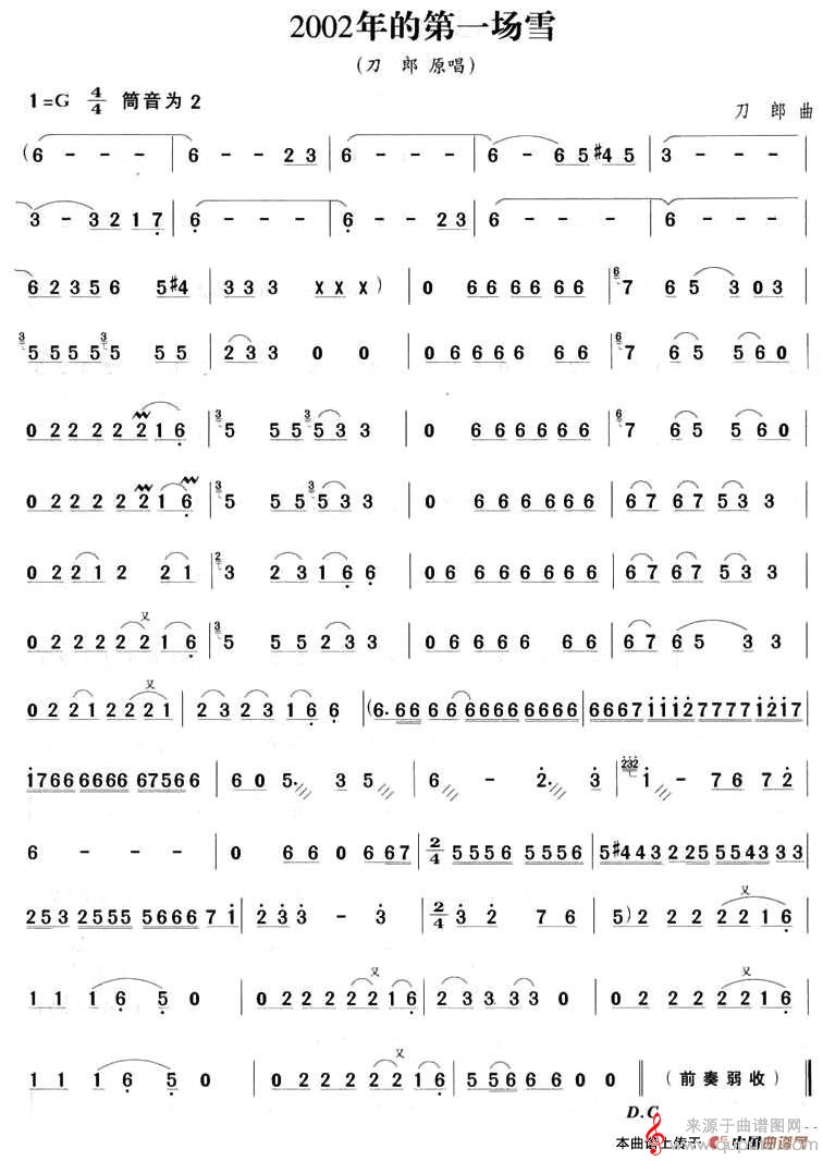 曲谱图网为您提供2002年的第一场雪歌曲简谱(2002年的第一场雪笛子洞箫曲谱)找谱子,就上曲谱图网。