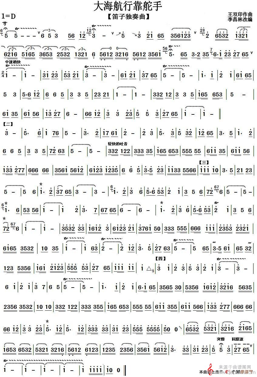 曲谱图网为您提供大海航行靠舵手简谱(大海航行靠舵手笛子独奏曲曲谱)找谱子,就上曲谱图网。