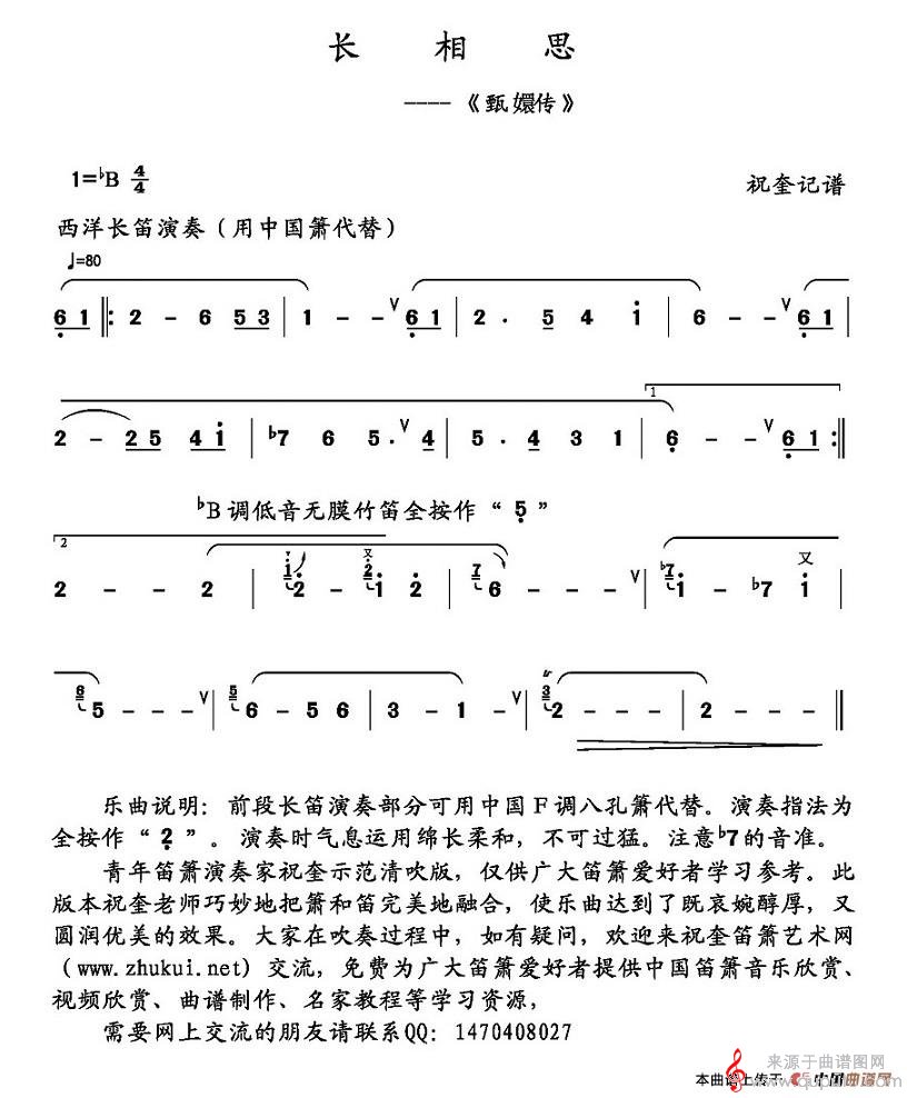 曲谱图网为您提供长相思五线谱电视剧《甄嬛传》插曲 (长相思高清西洋长笛演奏曲谱)找谱子,就上曲谱图网。