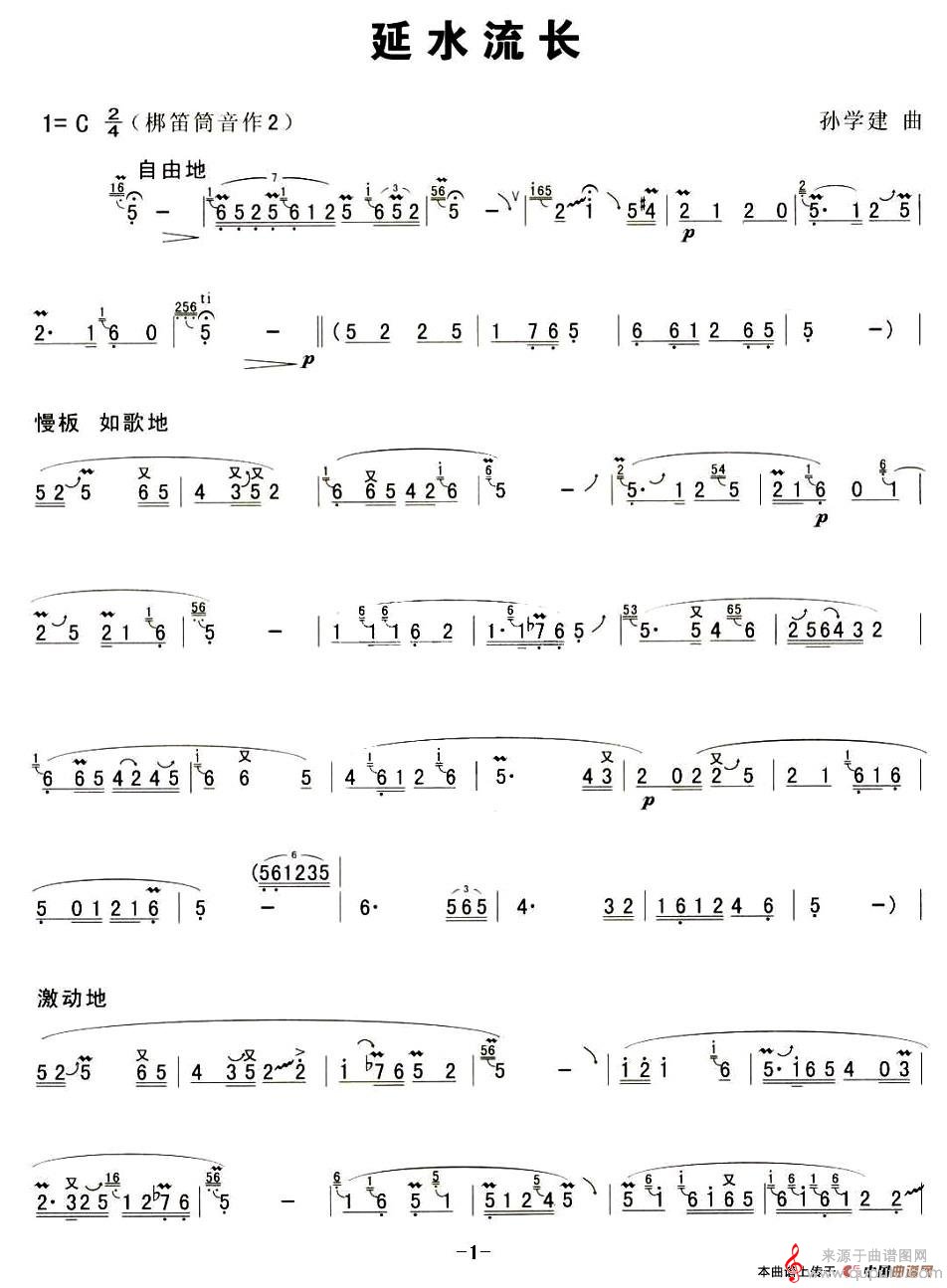 曲谱图网为您提供延水流长简谱(延水流长笛子独奏简谱)找谱子,就上曲谱图网。