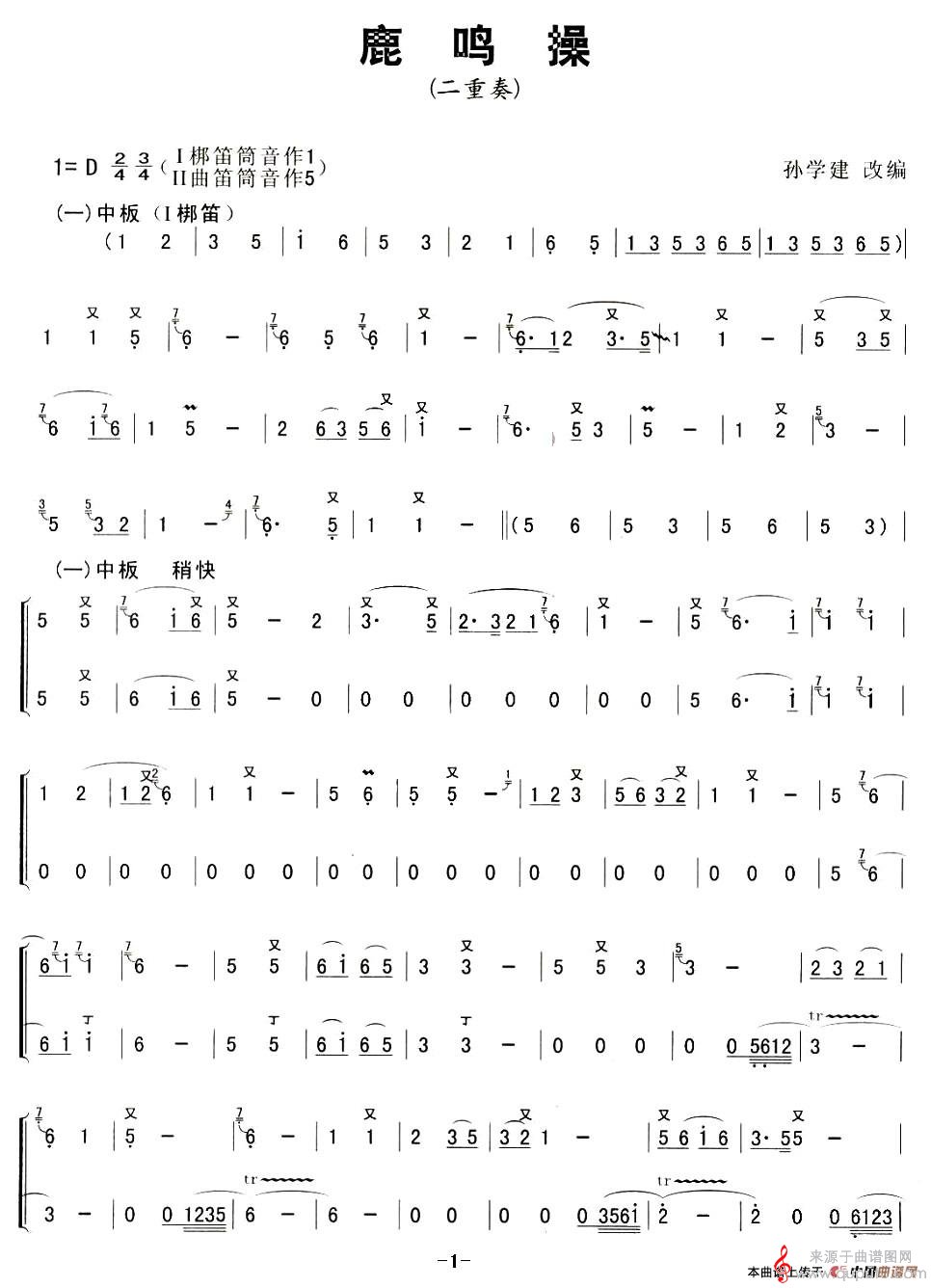 曲谱图网为您提供鹿鸣操曲谱(鹿鸣操洞箫二重奏简谱)找谱子,就上曲谱图网。