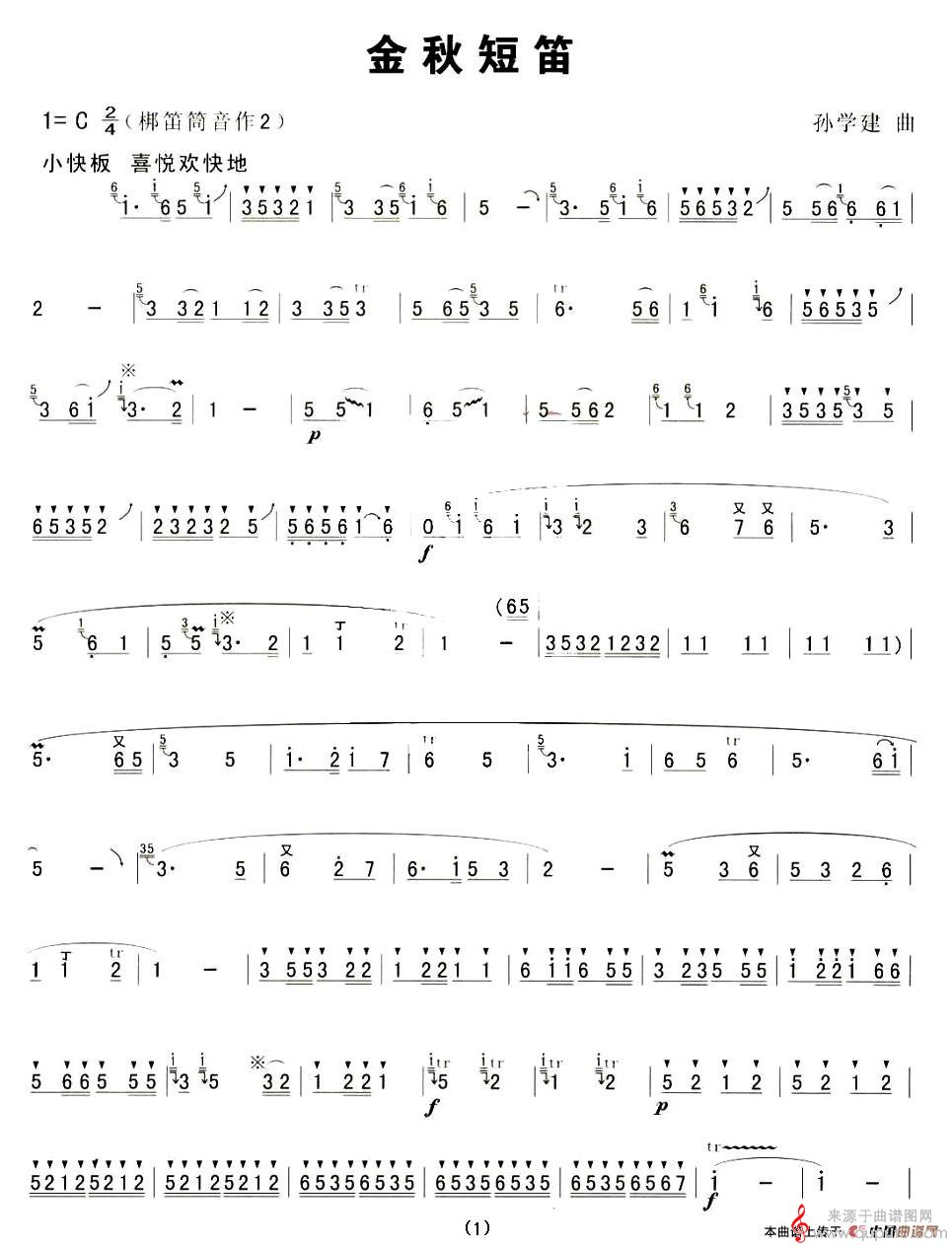 曲谱图网为您提供金秋短笛曲谱(金秋短笛笛子独奏简谱)找谱子,就上曲谱图网。