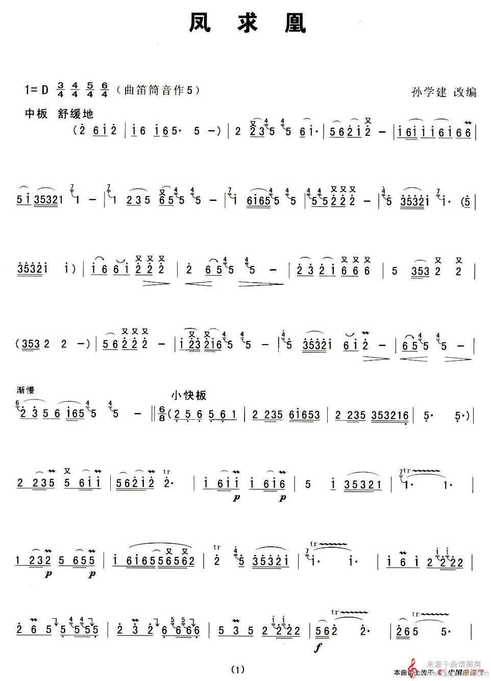 曲谱图网为您提供凤求凰简谱(凤求凰洞箫独奏箫曲简谱)找谱子,就上曲谱图网。