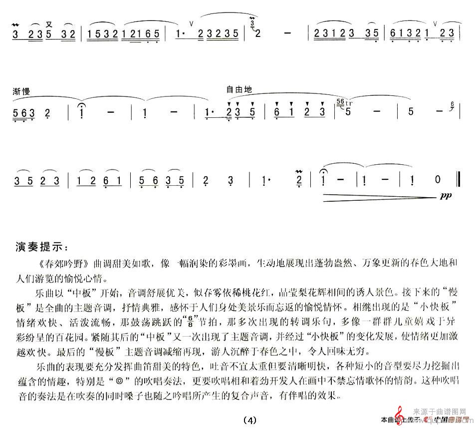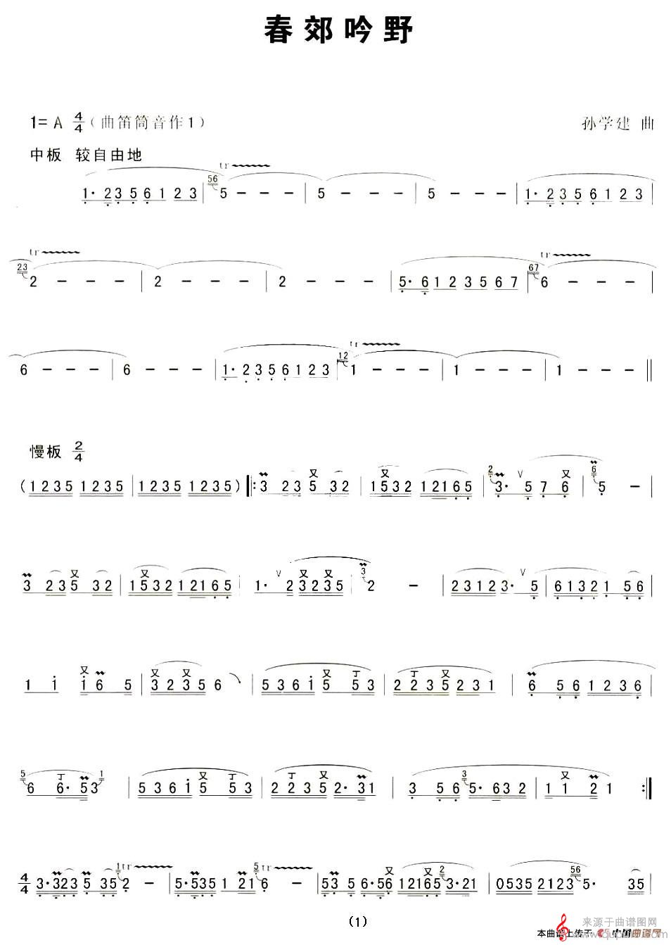 春郊吟野简谱(春郊吟野原创洞箫乐曲曲谱)