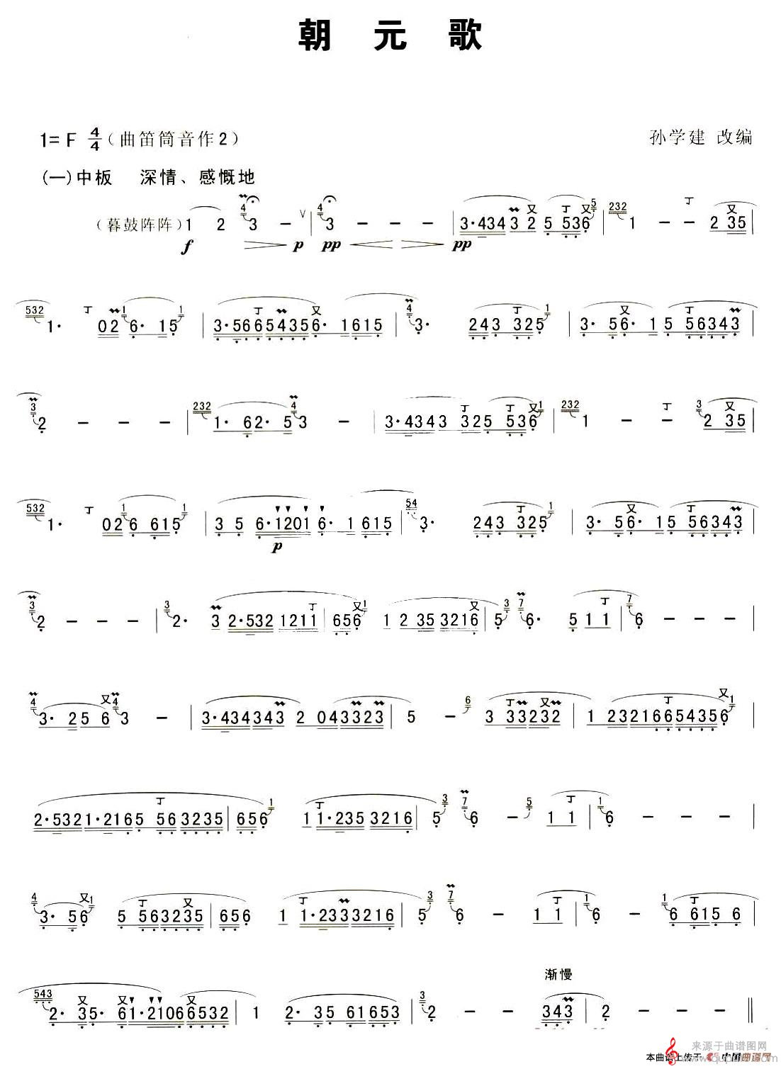 朝元歌曲谱(朝元歌洞箫笛子独奏简谱)