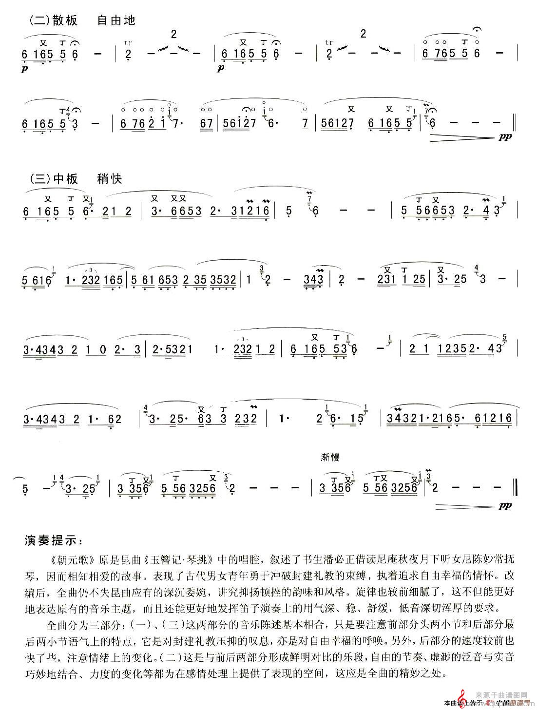 曲谱图网为您提供朝元歌曲谱(朝元歌洞箫笛子独奏简谱)找谱子,就上曲谱图网。