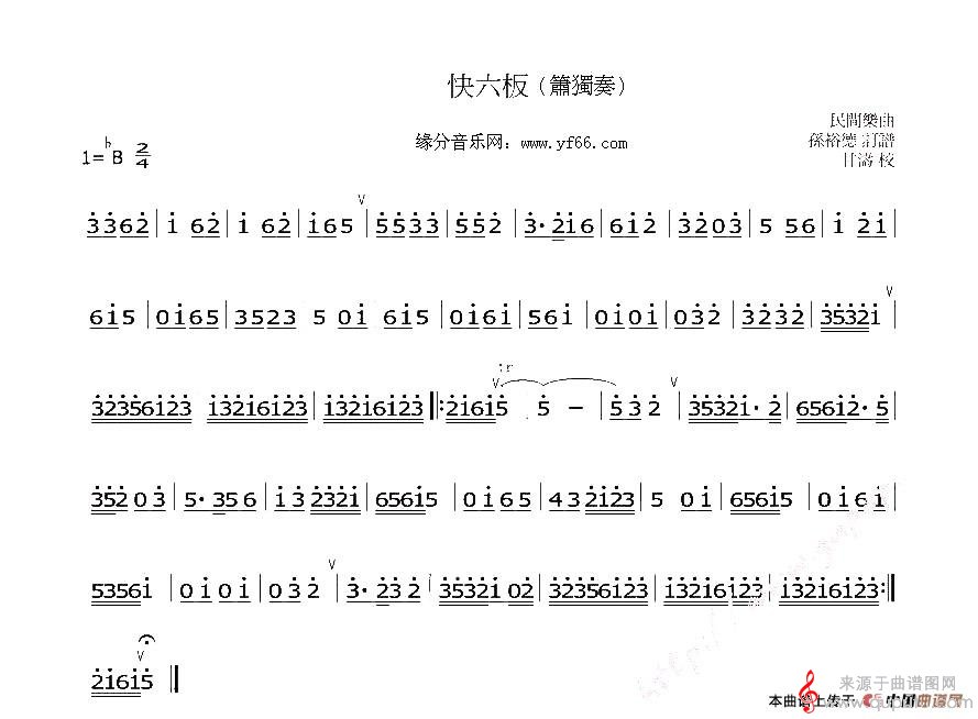 曲谱图网为您提供快六板简谱(快六板箫独奏曲谱)找谱子,就上曲谱图网。