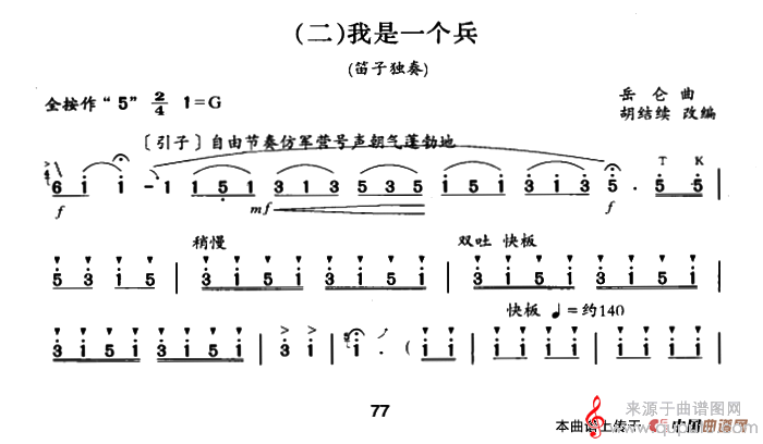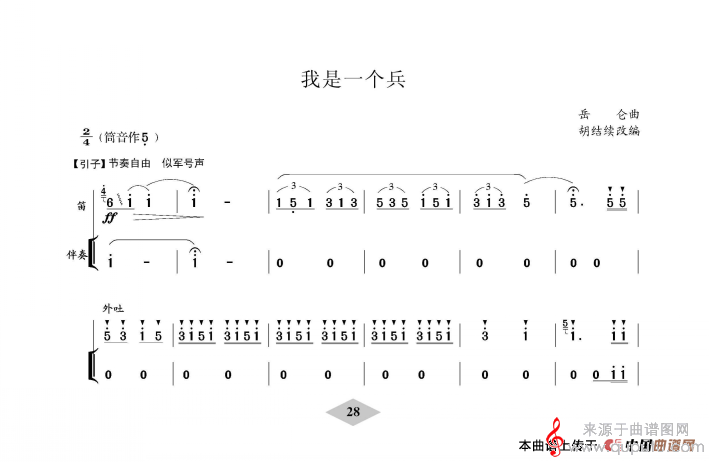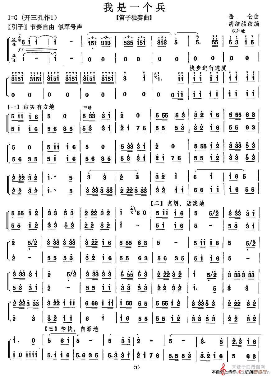 曲谱图网为您提供我是一个兵(胡结续改编版)(我是一个兵笛子独奏曲简谱)找谱子,就上曲谱图网。