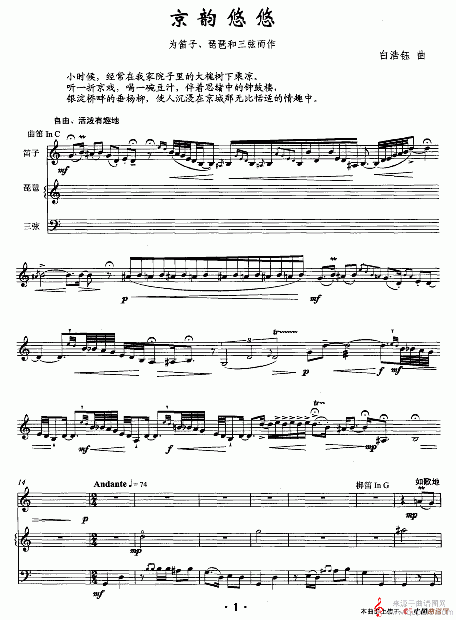 曲谱图网为您提供京韵悠悠简谱(京韵悠悠笛子+琵琶+三弦三重奏简谱)找谱子,就上曲谱图网。