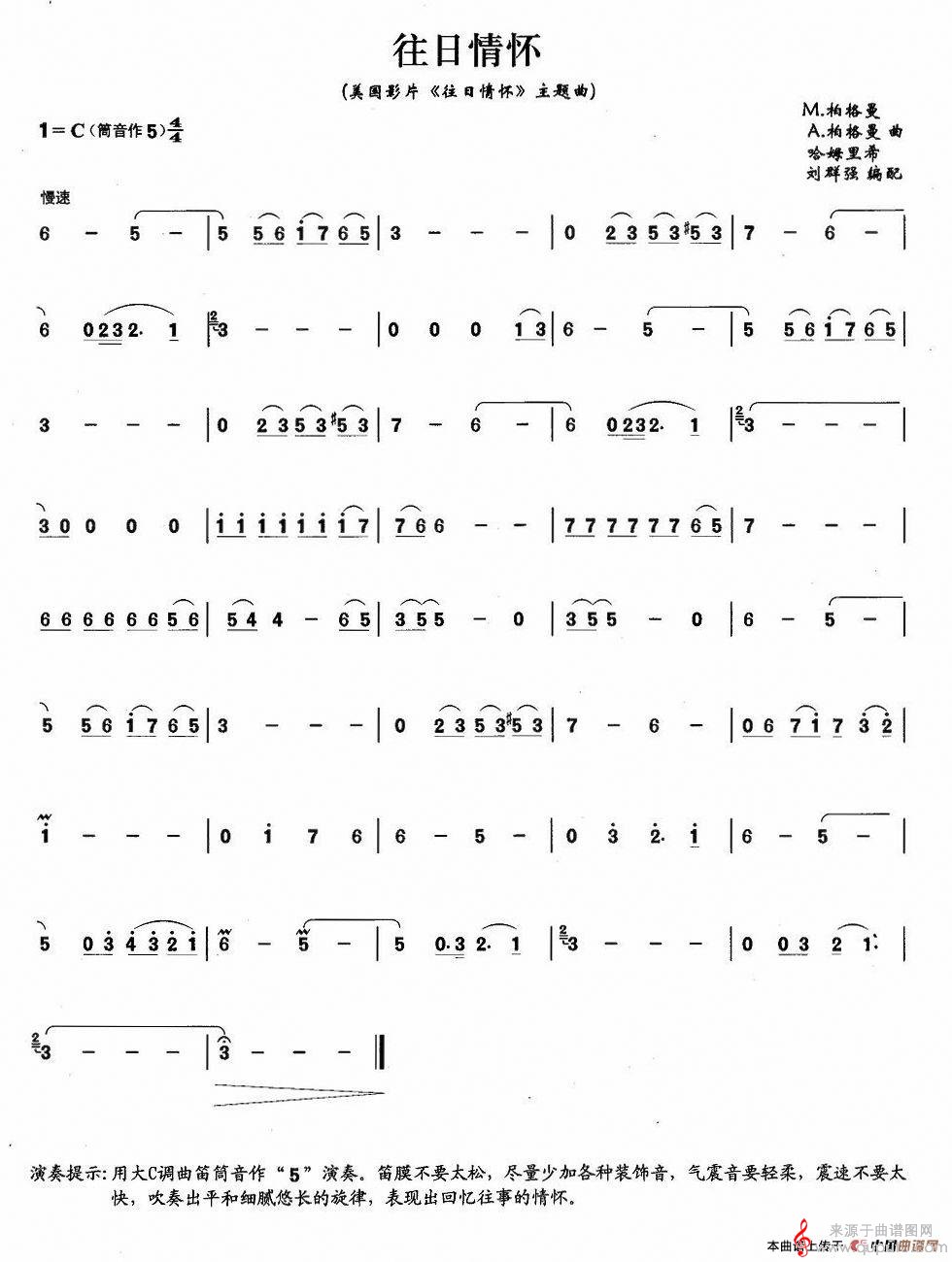 曲谱图网为您提供往日情怀简谱(往日情怀萧独奏简谱)找谱子,就上曲谱图网。
